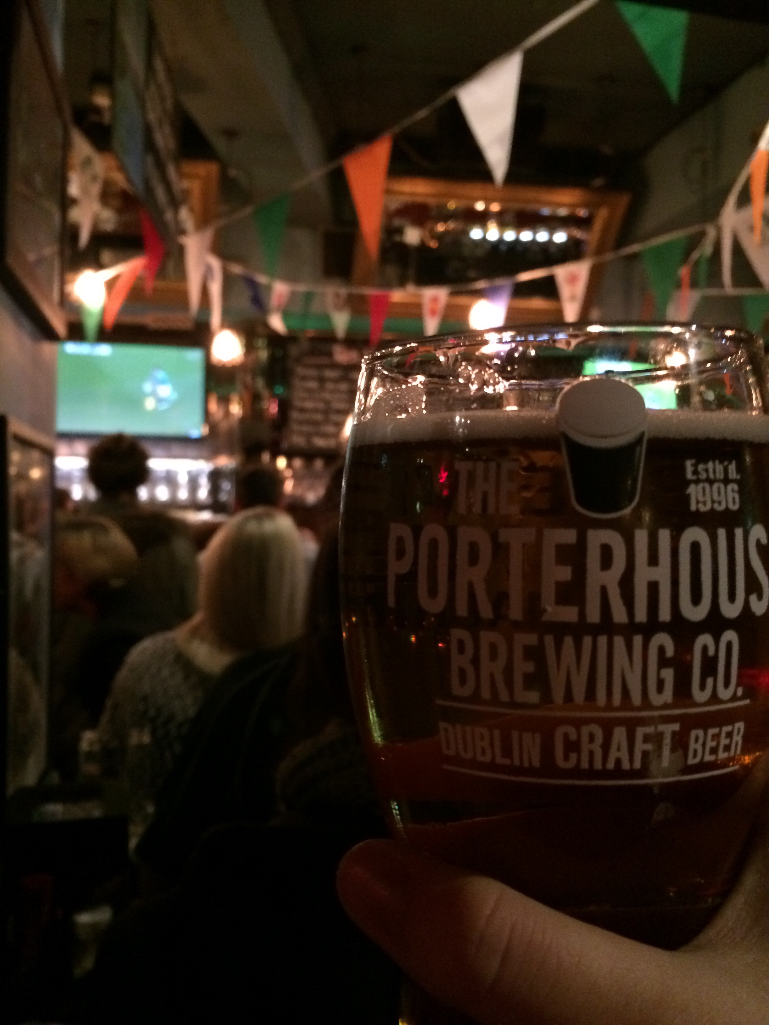 I wandered around the streets of Dublin near match time until I found a crowded bar of Ireland fans. It had to be crowded in order to get the right mood you see. I went to the Porterhouse in central Dublin. I’ve never been into a bar/pub alone before, so I’m pretty proud of myself for even going. It was for the good of being cultured I should say. Since I’m a professional people watcher (yes my psychology degree is good for something) I waited around and watched to see if anyone was there alone. Lo and behold, I found a victim, er person. I waited a bit and he looked like an awkward alone person at a pub, like myself. I approached him and asked “hey you here with a group” and he said no and I was like THANK GOODNESS. I stuck to him the whole time. He’s a student at Trinity studying science named Gavin. He helped me pick out a beer to order, but what he really did was teach me all the rules of rugby as they were happening. That was a lifesaver, otherwise I would have no idea what was going on.