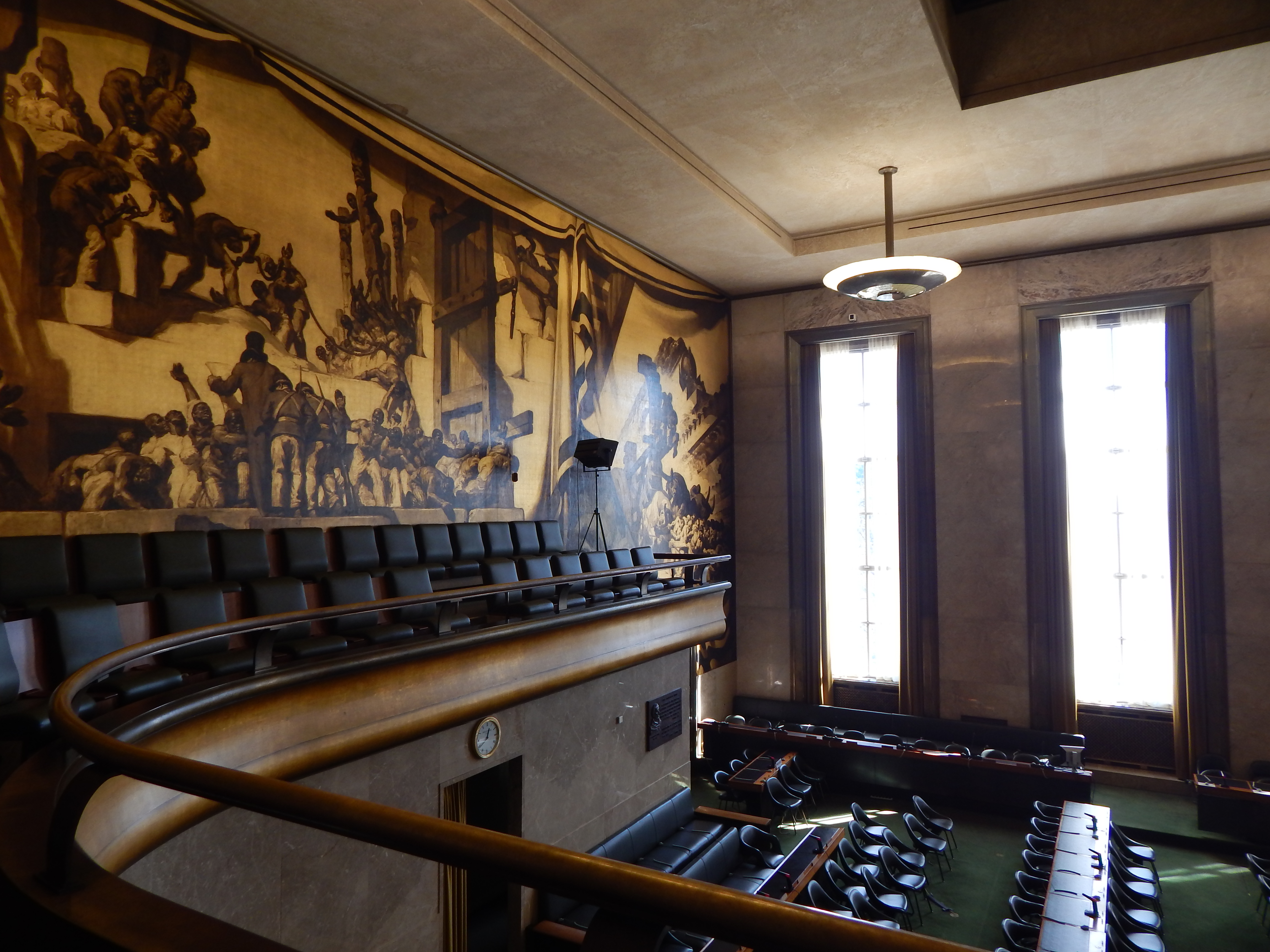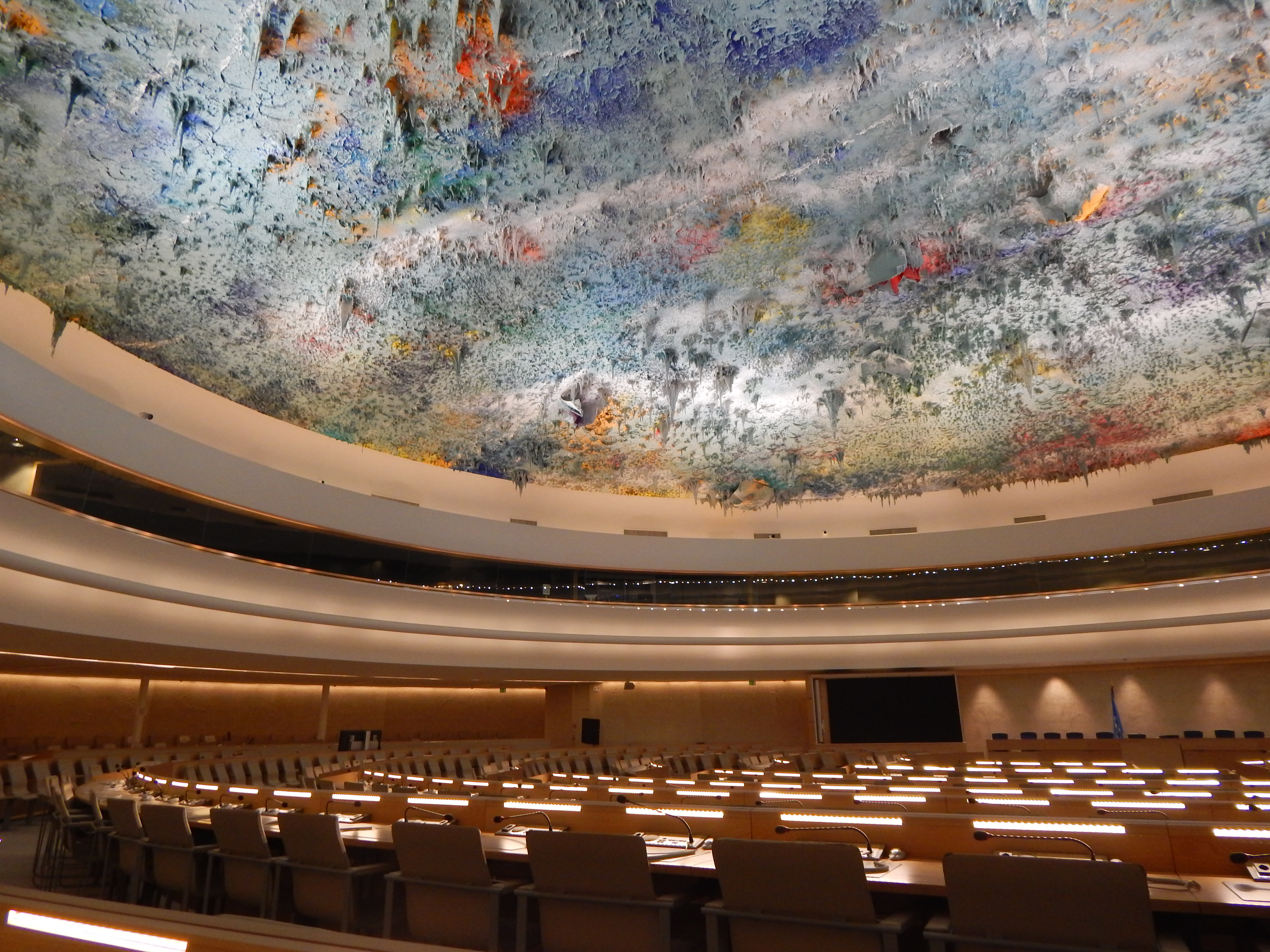 This is the chamber where the human rights and world alligence forums happen. The ceiling mimics stalagmites, and also represents the waves and the different colors of people. Or something with that caliber.