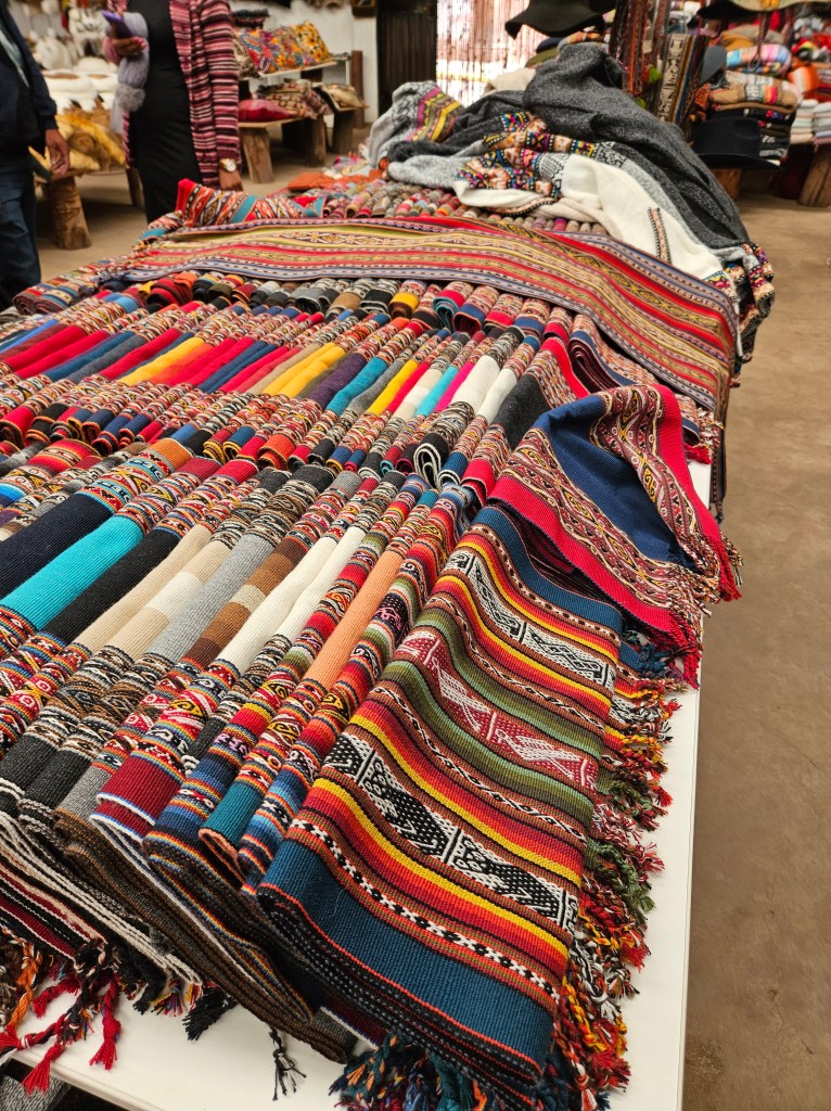 While super touristy, I really enjoyed learning about the different dyes and how indigenous people first began (and continue) to use natural ingredients to dye the wool! I am a big fan of bright colors, and feeling the baby alpaca and alpaca wool was really delightful. One of the coolest things I learned at this stop was that the cactus looking thing you see in the picture above, if you pull off the spines and get some of what looks like mold and rub it between your fingers, it turns a bright shade of red. I simply wasn’t expecting that, and it put in awe of how people from so long ago discovered these things.